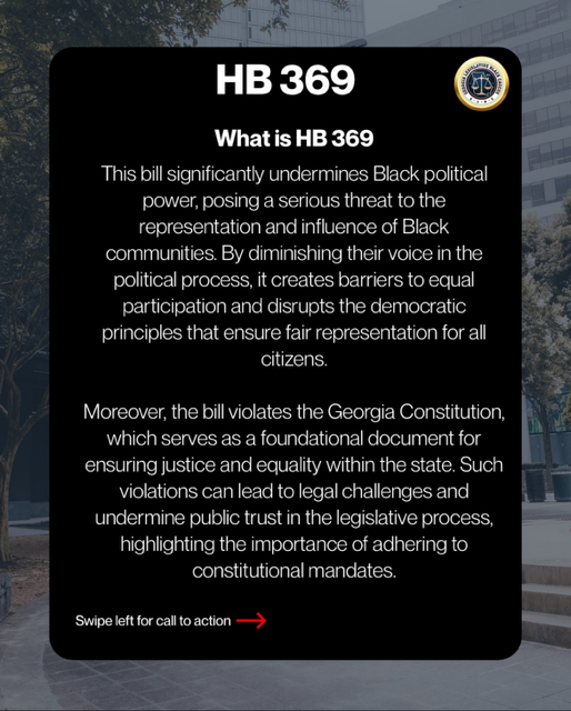 “GEORGIA HB 369 is unconstitutional and disrespecful to Black Leaderhip in Clayton, Cobb, DeKalb, Fulton, and Gwinnett.” — ga_blackcaucus.
